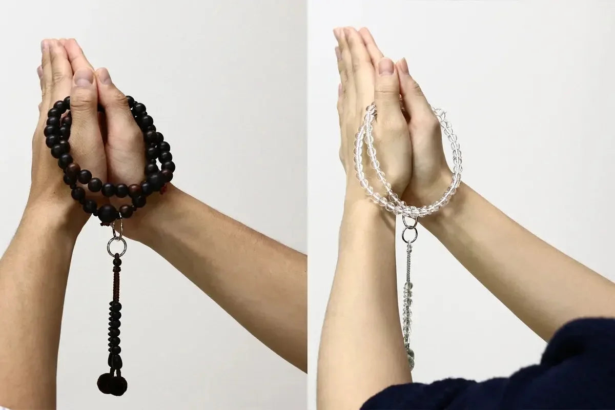 念珠は大きく分けて2種類の形式があります。全宗派共通で使える略式念珠(片手念珠)、宗派によって形の異なる本式念珠(正式念珠)があります。