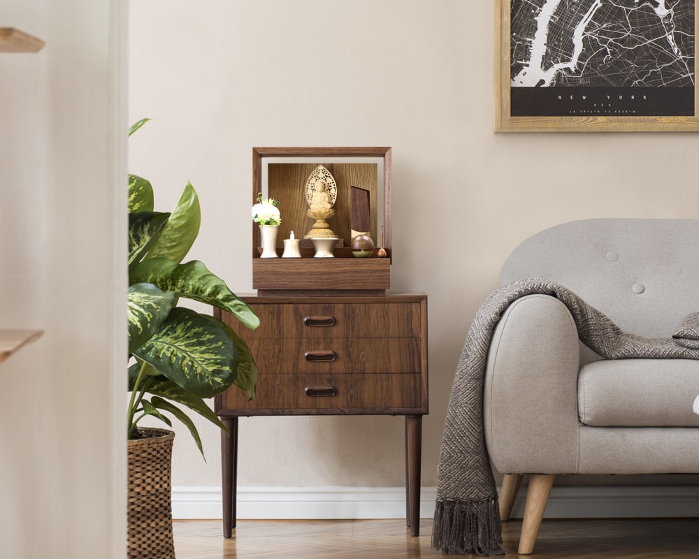 When shopping online, you can't actually see or touch the actual product, so it's inevitable that you'll feel anxious. At our store, we want our customers to shop with as much peace of mind as possible, so we create composite images of Buddhist altars for free.