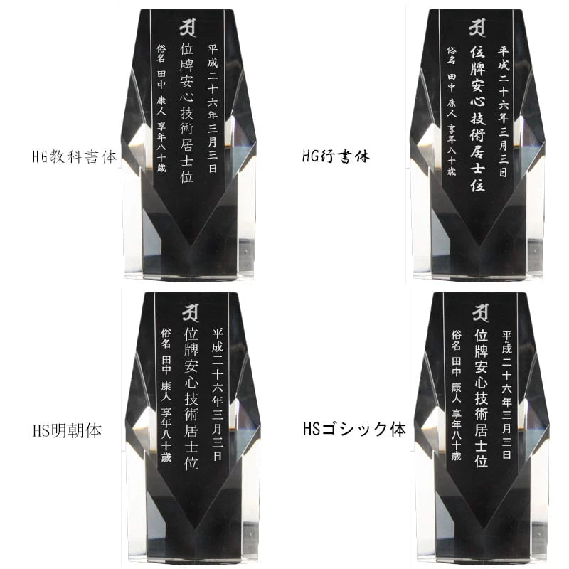 クリスタル位牌の字体(フォント)は選べますか?