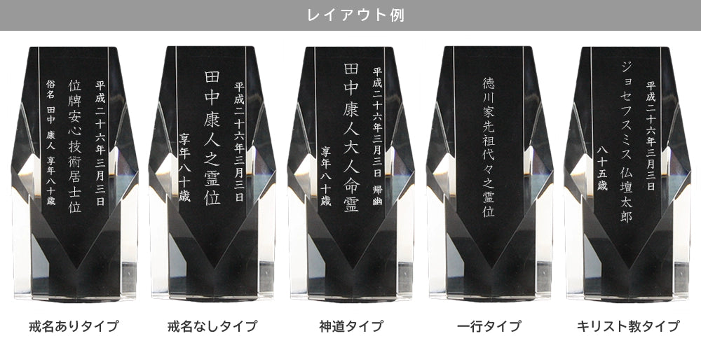 クリスタル位牌 のレイアウト(文字配列)を教えてください。