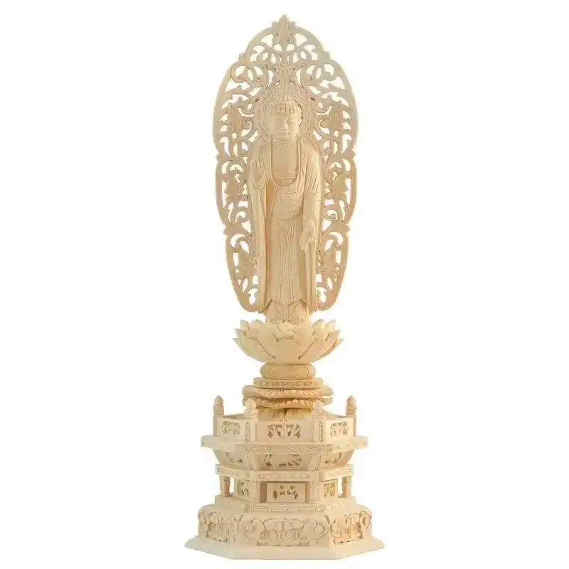 桧木仏像 六角台座 舟立弥陀 【浄土宗・時宗】:4.5寸 / 木地
