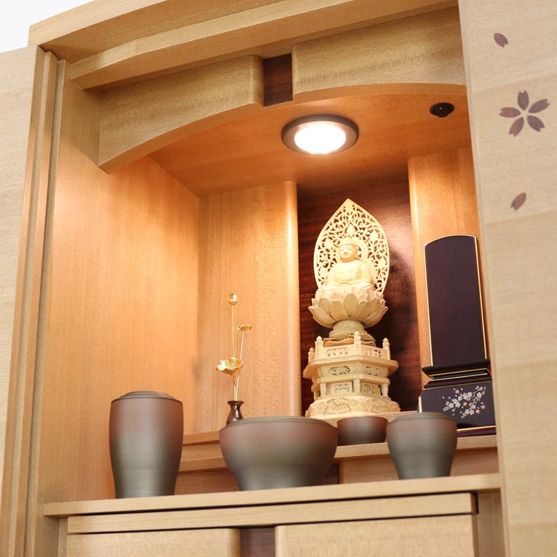 仏具によって荘厳(しょうごん)して初めてお仏壇としての意味を持ちます。仏具はご本尊を供養するのと共に、ご先祖様や亡き人を供養するためのものです。