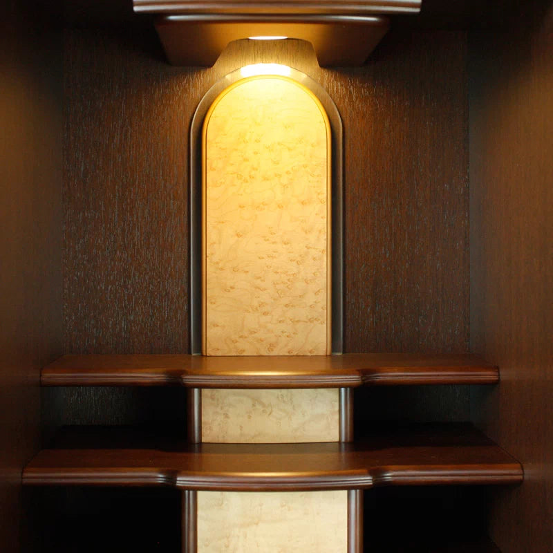 省エネ設計のLEDライトや扉の金具部分にはイタリア製の蝶番を使用したりと細部にまでこだわりが詰め込まれたお仏壇です。