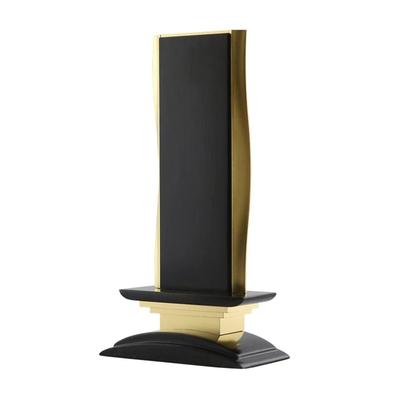 木材と金属を融合させたモダン位牌「波浄美位牌」の紹介動画です。光の反射による美しい色合いや、金属部分の曲線ラインを動画でわかりやすくご覧いただけます。ぜひ質感とデザインの魅力をお確かめください。