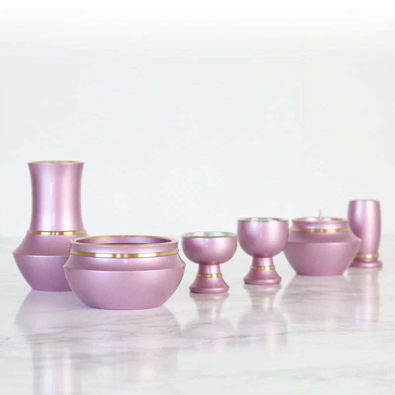 モダン仏壇・家具調仏壇によくマッチするパステルピンクの仏具セット。毎日、明るいキモチでお祈りして頂きたい・・・そんな想いから生まれた仏具シリーズです。