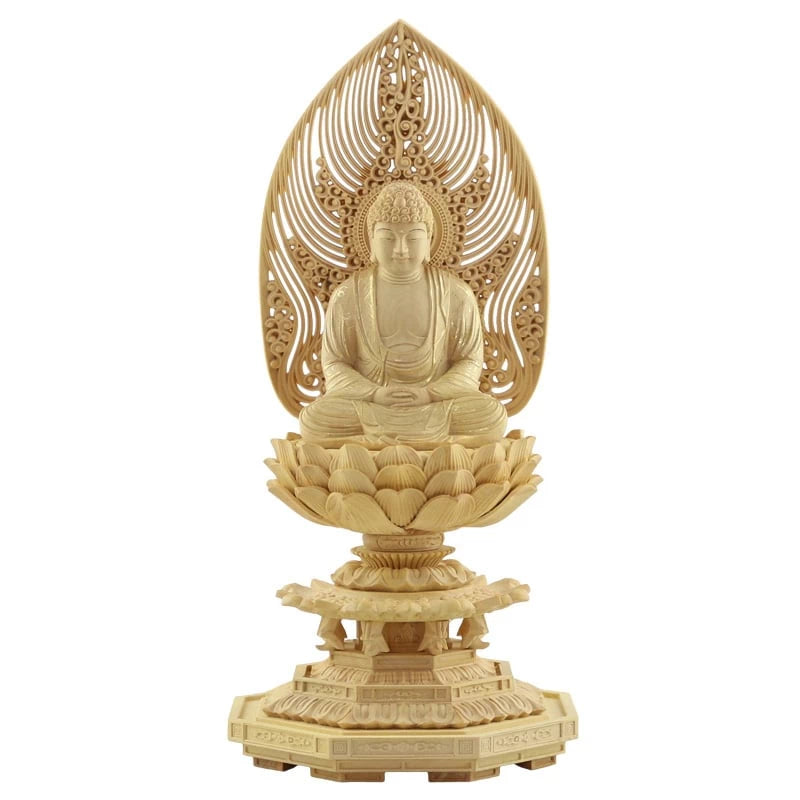 - 特 徴: ミニ~中型仏壇向き 、 玉眼入り(眼を埋め込む) 、 白毫・肉髻(額にガラス玉) 、 金泥書(仏身に金の筆書き) 、 切金(仏身に金を貼る) 、 選べる光背 、 曹洞宗 、 臨済宗妙心寺派 、 臨済宗全般 、 臨済宗南禅寺派 、 臨済宗東福寺派 、 臨済宗建仁寺派 、 黄檗宗
