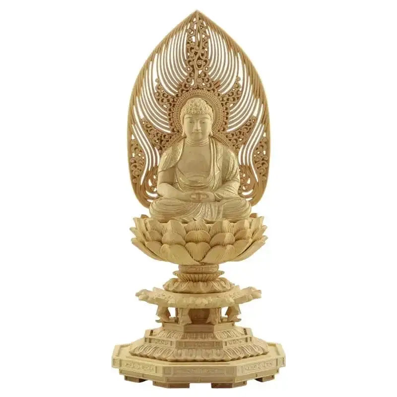 本柘植仏像 上彫り 八角台座 座阿弥陀 【天台宗】:2.0寸 / 切金 / 水煙光背