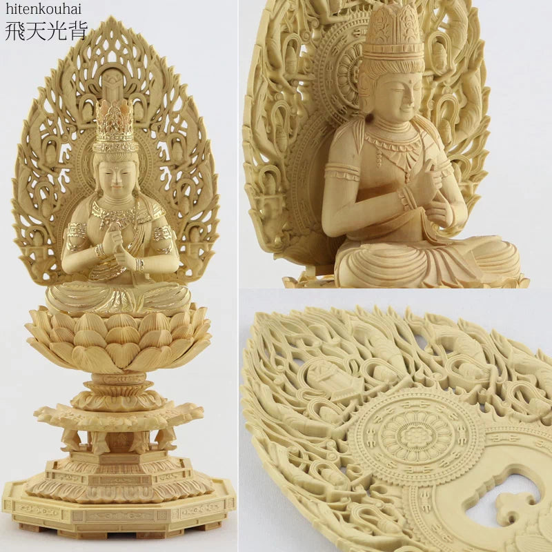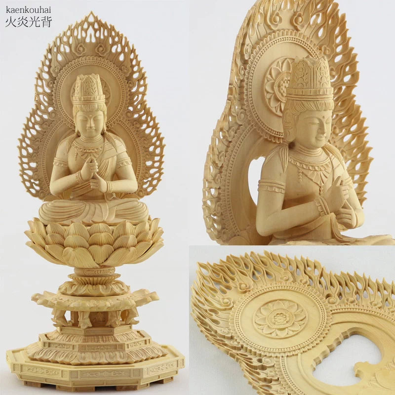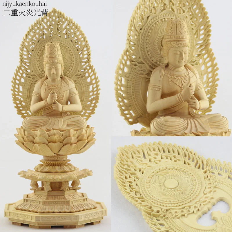 仏像の光背(後ろの板)は火炎光背・二重火炎光背・飛天光背の3種類から同価格でお選び頂けます。