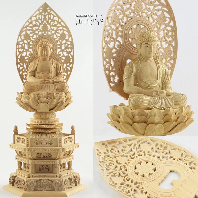 ※仏身・光背・台座はすべて別々になっております。各部品は簡単な差し込み式となっております。差し込みが稀にきつい場合がありますがその際は左右に動かしながら差し込むとしっかりと入れることができます。