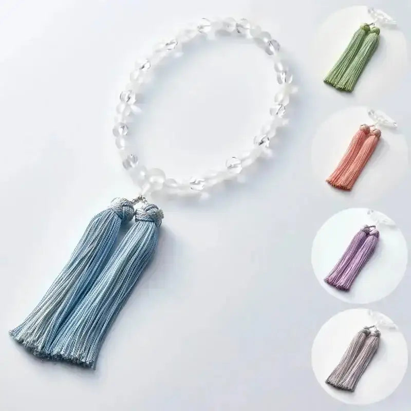 ホワイトオニキスと霧水晶を使用、5色の房からお選びいただけます。