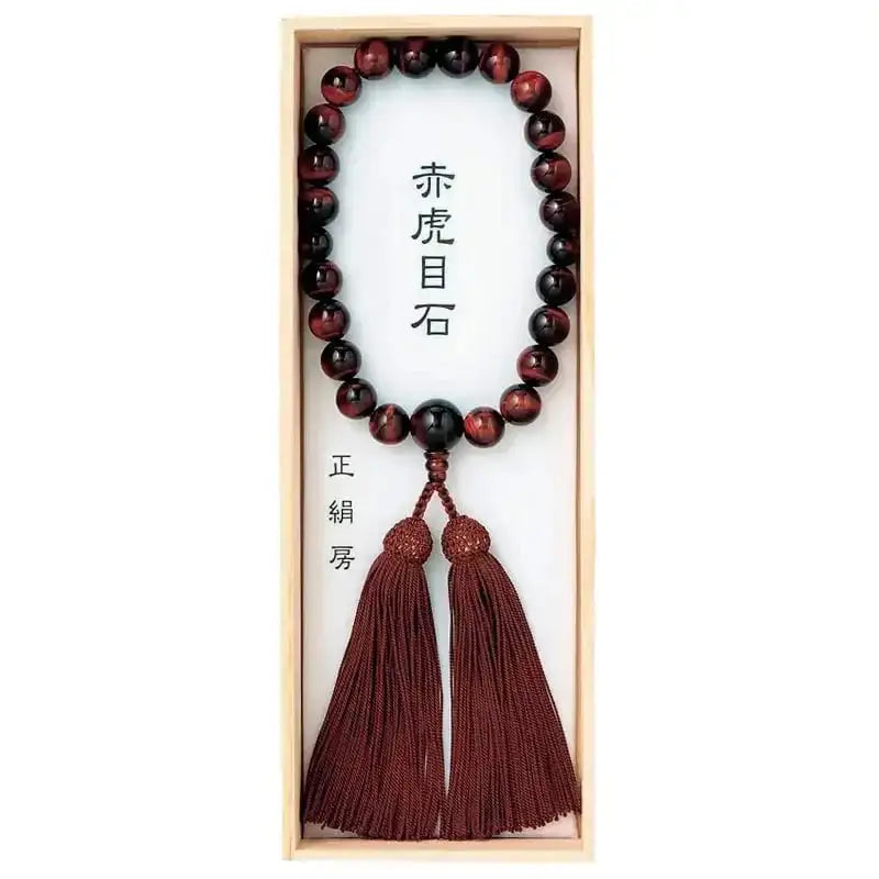 赤虎目石を使用した高級京念珠。房はベーシックデザインの頭房です。