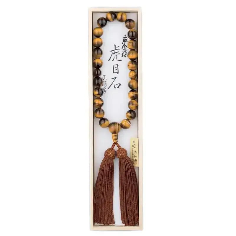 虎目石(トラメ)を使用した高級京念珠。房はベーシックデザインの頭房です。