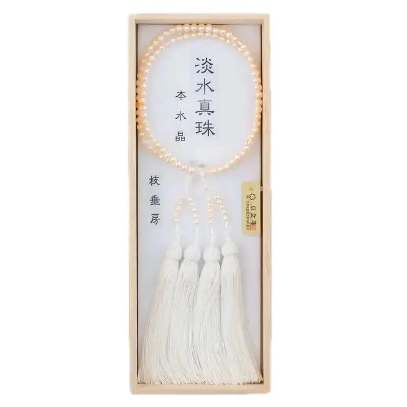 略式二連念珠(女性用) 淡水真珠(白) 水晶仕立 枝垂房