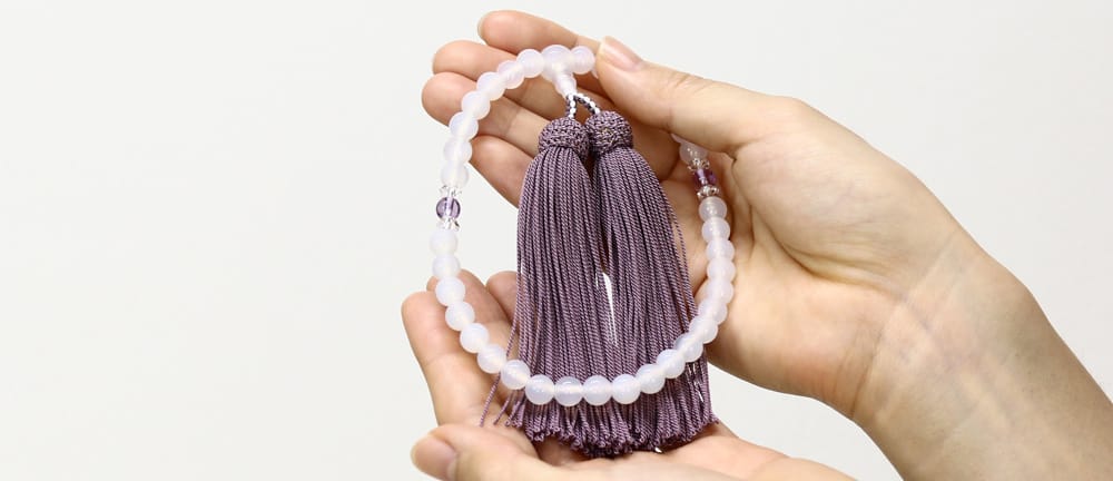念珠(別名:数珠)は、清浄な心で仏様に手を合わせる念珠の輪の中に手を通すことで、浄土の世界と繋がる、大切な法具です。最近では法事や葬儀の時だけご使用になるのが一般的になりつつありますが、日常のお仏壇に手を合わせる際にもご使用頂くことで、浄土の世界にいる故人様やご先祖様と繋がることが出来ると考えればあると良い仏具です。