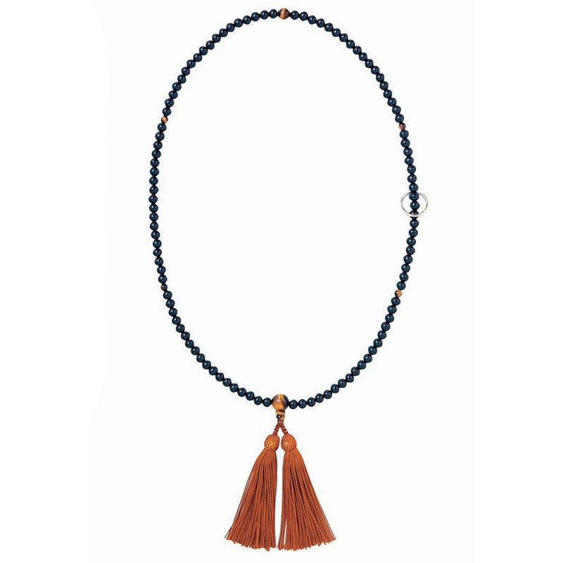 曹洞宗の本式念珠(男性用)。黒檀・虎目石を使用した京念珠です。