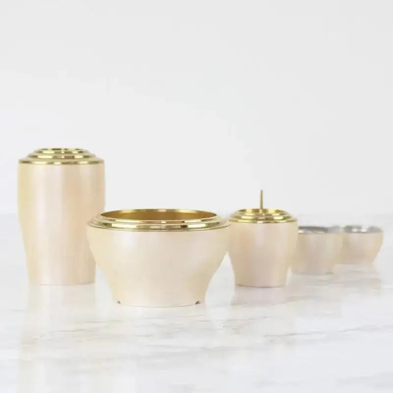 モダン仏壇・家具調仏壇によくマッチする優しいクリーム色の仏具セット。女性目線の企画で制作された色合い。ふんわり柔らかいクリーム色はお仏壇を素敵に彩ります。