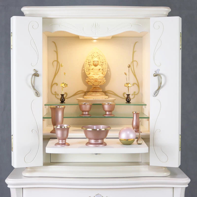 グッドデザイン賞にも輝いた丸いフォルムの可愛いおりん「たまゆらりん」のサクラ色です!モダン仏壇・家具調仏壇はもちろん、従来の仏壇にもマッチする人気NO.1のおリンシリーズです。サクラ色は女性に大人気のカラーになります。ピンク色も濃いピンクではなく、優しく淡い色合いなので暖かい雰囲気がお仏壇に漂います。