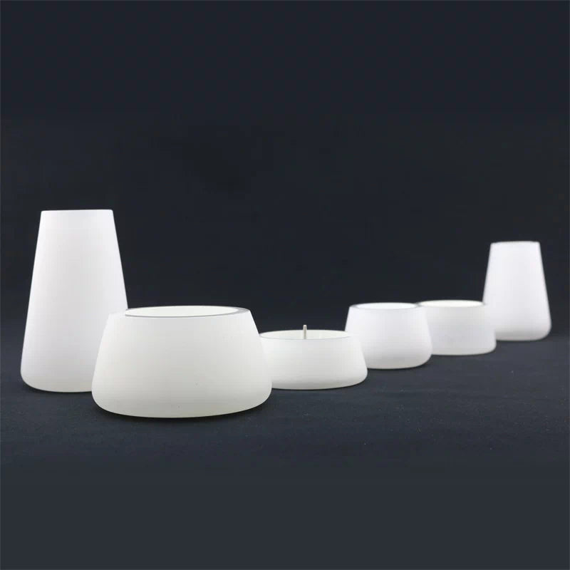 フロストホワイトのデザインガラス仏具。ガラスを幾多と重ね合わせたデザインです。