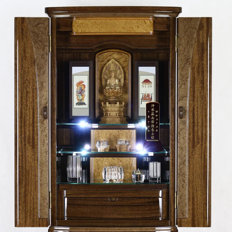 仏具によって荘厳(しょうごん)して初めてお仏壇としての意味を持ちます。仏具はご本尊を供養するのと共に、ご先祖様や亡き人を供養するためのものです。