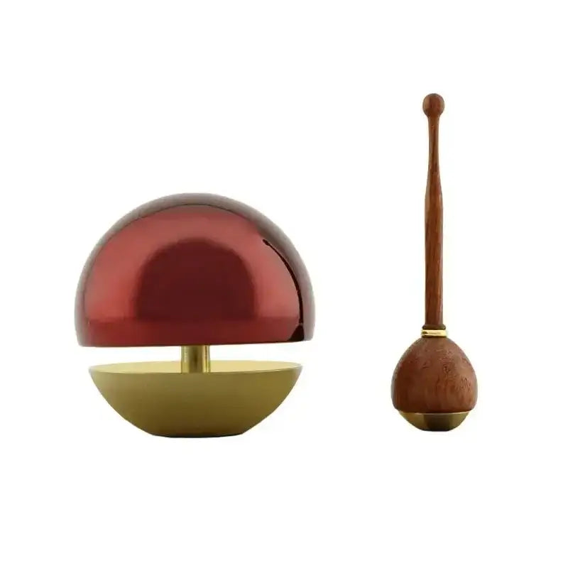 通常のおリンはリン本体を全面で支えている構造に比べ、たまゆらリンはリン本体を1点のみで支えることで音がとても伸びます。リンの大きさは1.8寸と2.0寸があり、1.8寸は高く長い音色、2.0寸は若干落ち着いた音色で長い音色を奏でます。