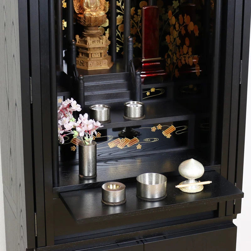 飾る位置は「お仏壇最下段の右下の手前」が良いでしょう。右下は「おりん」を鳴らしやすい位置となります。お仏壇においてお線香を供える際も右手、リンを打つ際も右手で行います。元はインドから伝わった仏教ですので左手は不浄の手とされているためです。なので右手で鳴らす際に打ちやすい位置を考えた際に右下に「おりん」が良いでしょう。
