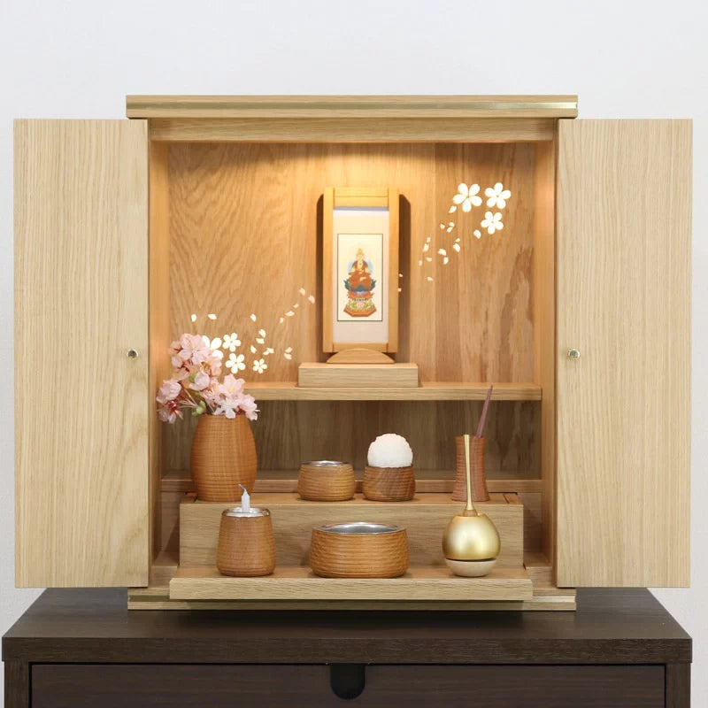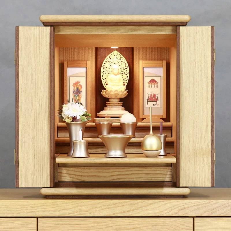 木材は強さとしなやかさを兼ね備えてた「タモ材」という木材を使用して作られております。明るい色合いでお仏壇に飾るとナチュラルで明るい雰囲気が漂います。