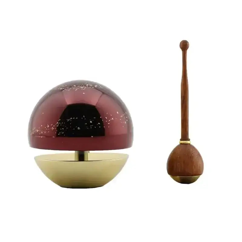 通常のおリンはリン本体を全面で支えている構造に比べ、たまゆらリンはリン本体を1点のみで支えることで音がとても伸びます。リンの大きさは1.8寸となり、高音の長く美しい音色を奏でます。また銀河シリーズは表面に星屑のような彫刻をしておりますが、これによる音の違いはほどんどありません。(人の耳では違いを聞き分けられない位です)