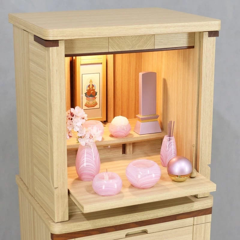 モダン仏壇・家具調仏壇はもちろん、従来の仏壇にもマッチします。もちろんリンの形には宗派による決まりなどは一切ありませんのでご自由にデザイン・音色でお選び頂けます。