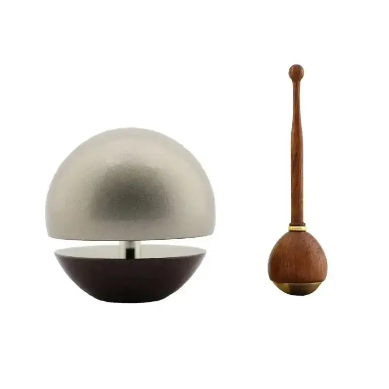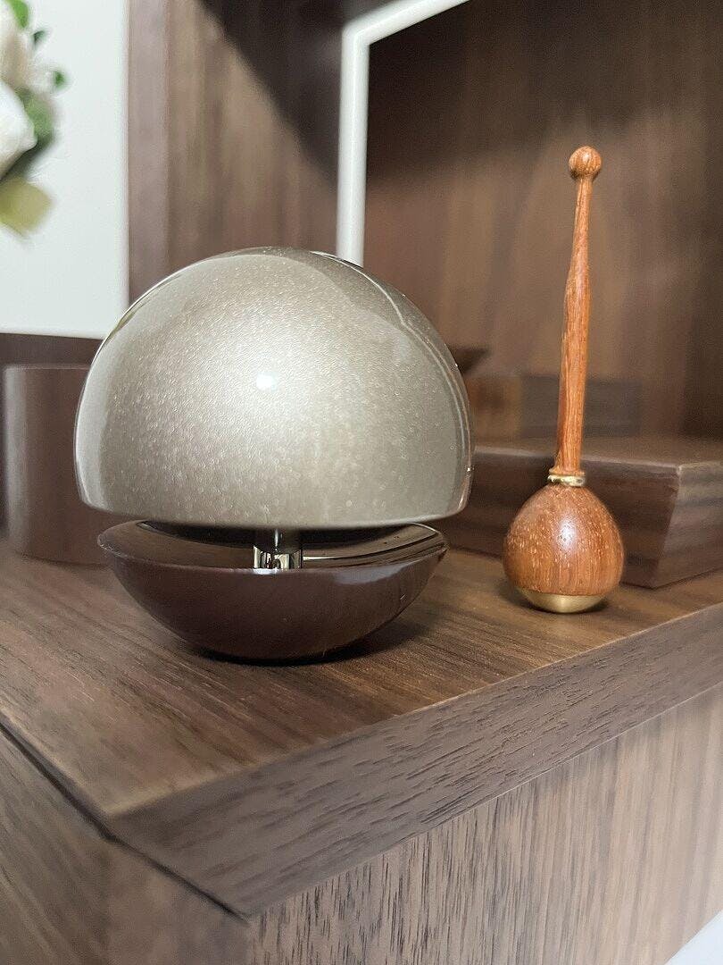 通常のおリンはリン本体を全面で支えている構造に比べ、たまゆらリンはリン本体を1点のみで支えることで音がとても伸びます。リンの大きさは1.8寸となり、高音の長く美しい音色を奏でます。