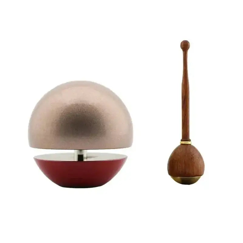 通常のおリンはリン本体を全面で支えている構造に比べ、たまゆらリンはリン本体を1点のみで支えることで音がとても伸びます。リンの大きさは1.8寸となり、高音の長く美しい音色を奏でます。