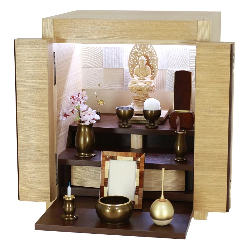 落ち着いたブラウンの色合いは仏壇に合わせやすいカラーです。