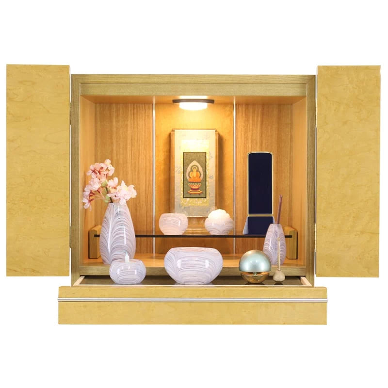 こちらの商品は5年間の製品保証が付きます。自然に使用していて発生した問題に関しては、すべて無料で修理を行わせて頂いております。その際のご依頼は「お仏壇の5年保証期間内の修理依頼【0円修理】」のページよりお申込み下さい。