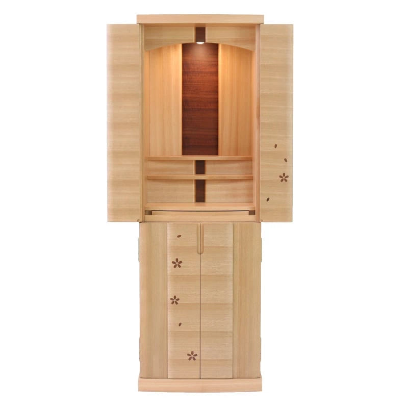 桜の彫刻がおしゃれなモダン仏壇。北海道産の樺桜材を使用した純国産仏壇。