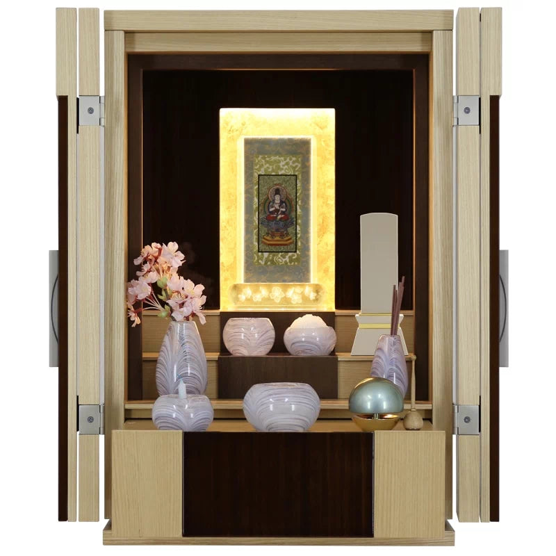こちらの商品は5年間の製品保証が付きます。自然に使用していて発生した問題に関しては、すべて無料で修理を行わせて頂いております。その際のご依頼は「お仏壇の5年保証期間内の修理依頼【0円修理】」のページよりお申込み下さい。