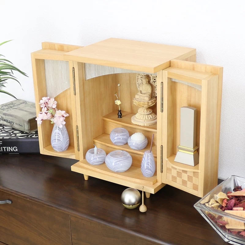 49日法要をお寺で行うときは、お寺さんに本位牌と仮位牌(白木位牌)を持参して魂の移し替えをしていただき、帰宅後、お仏壇に安置します。