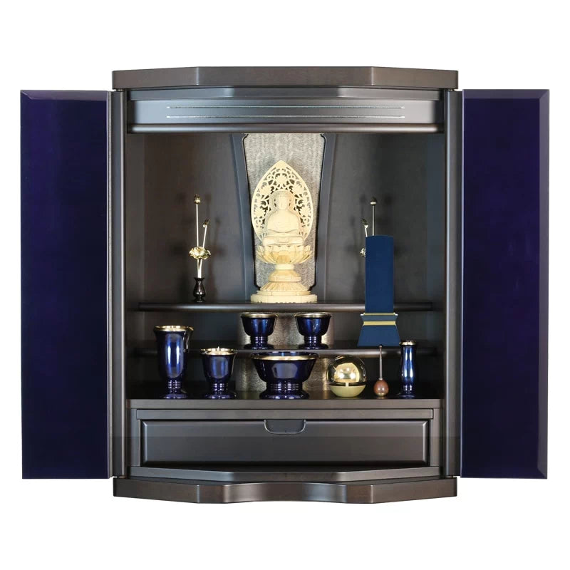 深いネイビー色の小さくて、可愛らしい、会津モダン位牌。