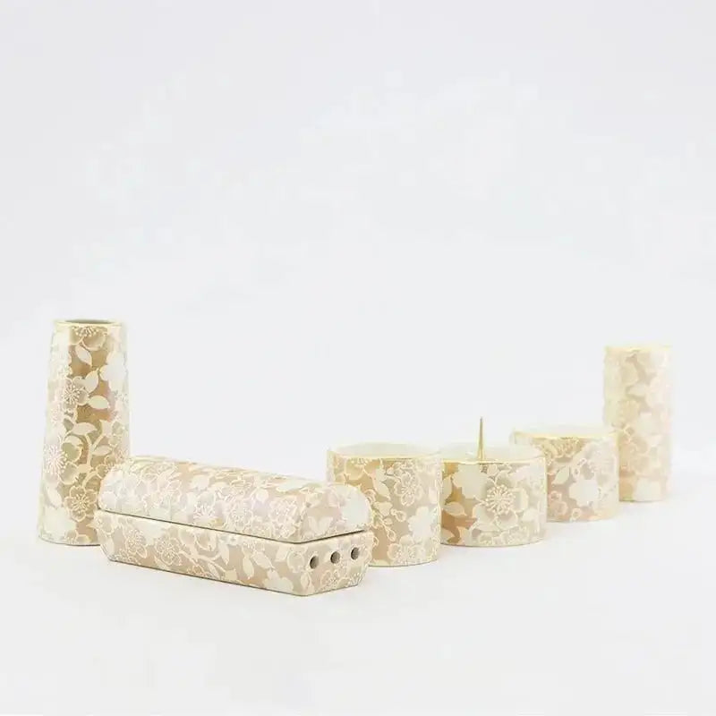 美濃焼仏具セット 花むすび 筒型香炉 シャンパンゴールド