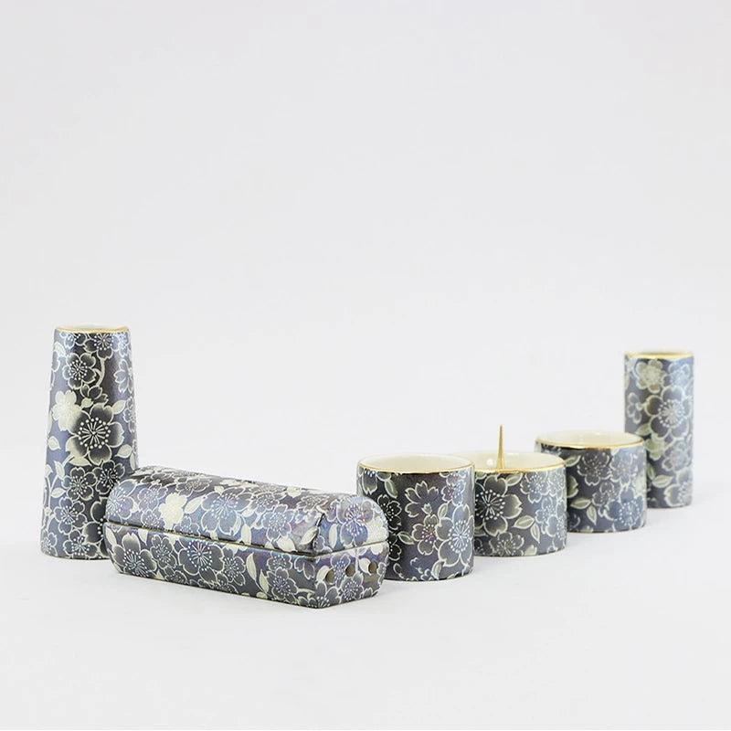 美濃焼仏具セット 花むすび 筒型香炉 ブラックパール:不要