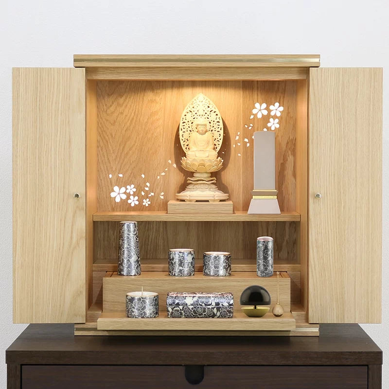 暖かいイメージの桜は、お仏壇内に暖かく優しい雰囲気を漂わせます。