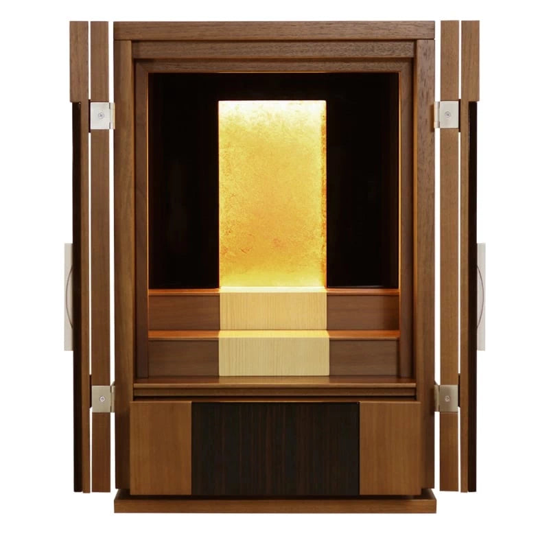 会津の職人が創り出す極上のモダン仏壇。扉が折りたためてスリムな設計。