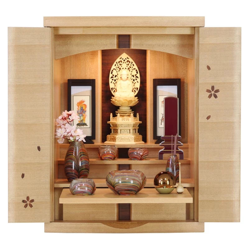 こちらの商品は5年間の製品保証が付きます。自然に使用していて発生した問題に関しては、すべて無料で修理を行わせて頂いております。その際のご依頼は「お仏壇の5年保証期間内の修理依頼【0円修理】」のページよりお申込み下さい。