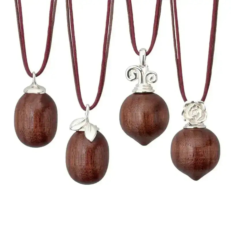 ウォールナットのあたたかな素材と、木の実のようなかわいらしいデザインの遺骨ジュエリー。
