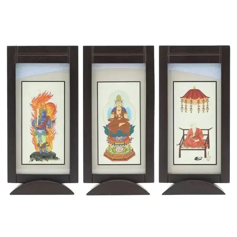 スタンド型掛け軸「遥」ウォールナット色 ミニサイズ 【各宗派対応】:3幅セット / 真言宗