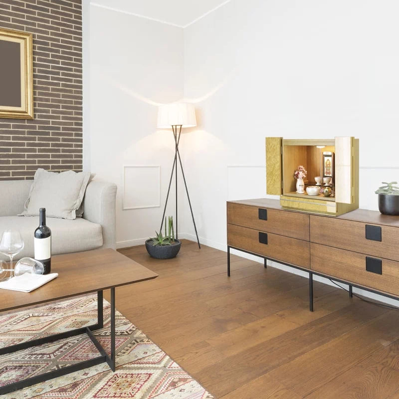 直射日光と冷暖房が直接当たることを避けた位置にお仏壇を設置して下さい。直射日光は色の変色に繋がりますので避けて下さい。また暖房を直接あてると木材の膨張に影響し、扉や引き出し等の不具合につながる可能性があります。