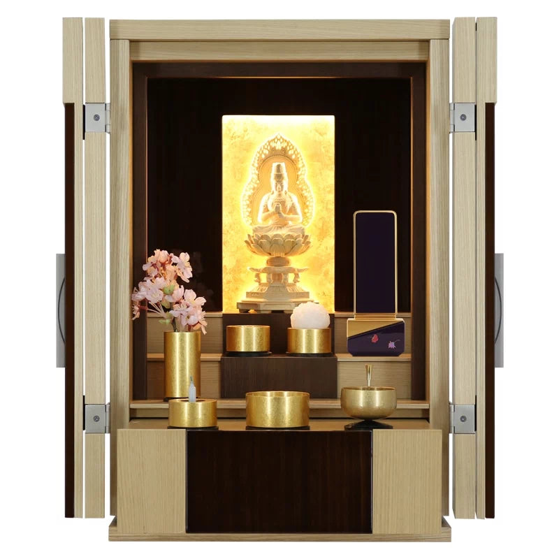 こちらの商品は5年間の製品保証が付きます。自然に使用していて発生した問題に関しては、すべて無料で修理を行わせて頂いております。その際のご依頼は「お仏壇の5年保証期間内の修理依頼【0円修理】」のページよりお申込み下さい。