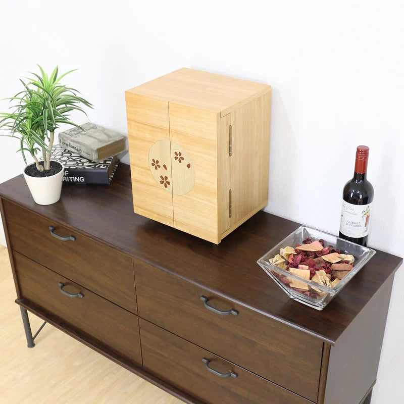 • 扉の桜柄は洋室・和室問わずマッチします。コンパクトなサイズ感でサイドボードの上などにも気軽に置くことができます。
