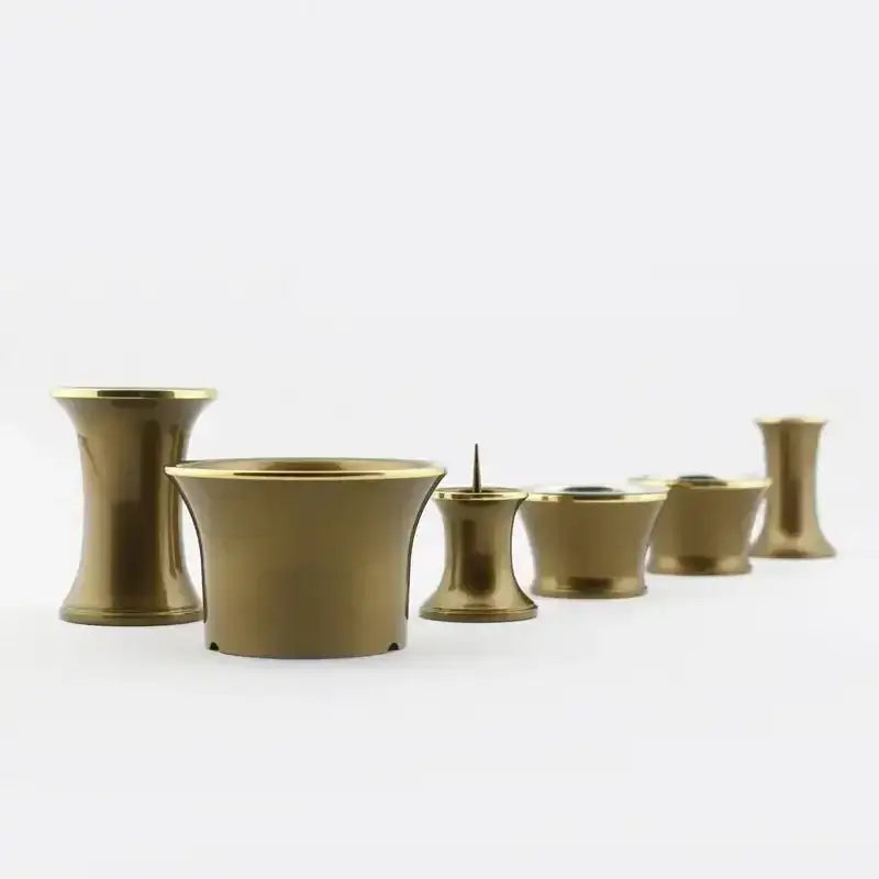 現代の小さな仏壇に合わせて作られたコンパクトな仏具セットです。スタイリッシュなフォルムがお仏壇に飾った際に優しい雰囲気を作りだします。艶やかな表面は美しく輝き、ライトブラウンの色合いは、上品な祈りの場を創り出します。各仏具の開口部の縁取りはゴールドで高級感と存在感を高めます。