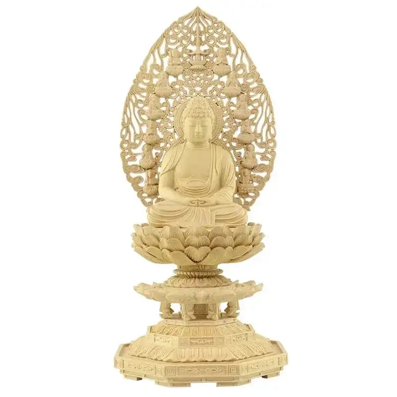 本柘植仏像 上彫り仕上げ 座阿弥陀 十三仏光背 【天台宗】:2.0寸 / 切金/眼入り / 八角台座