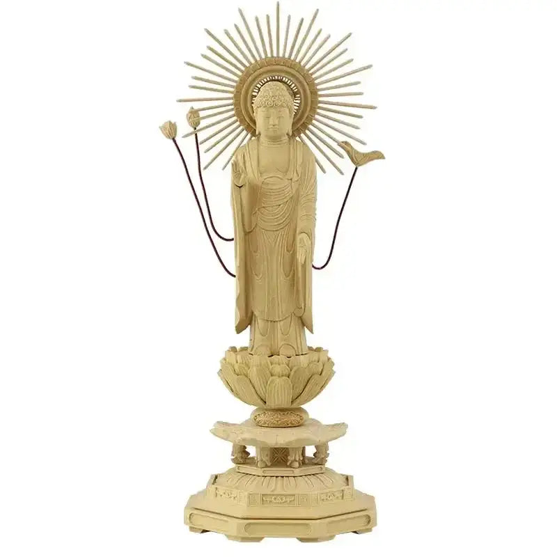 本柘植仏像 八角台座 東立弥陀 【浄土真宗東大谷派】:4.5寸 / 木地