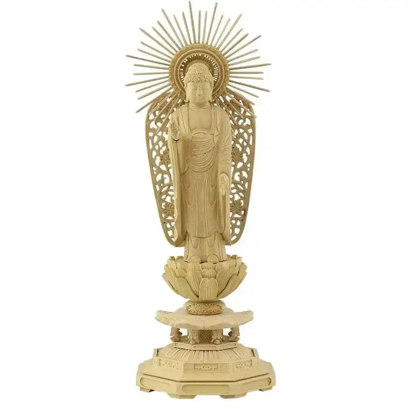 本柘植仏像 八角台座 西立弥陀【浄土真宗本願寺派】:4.5寸 / 木地